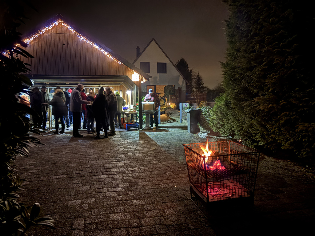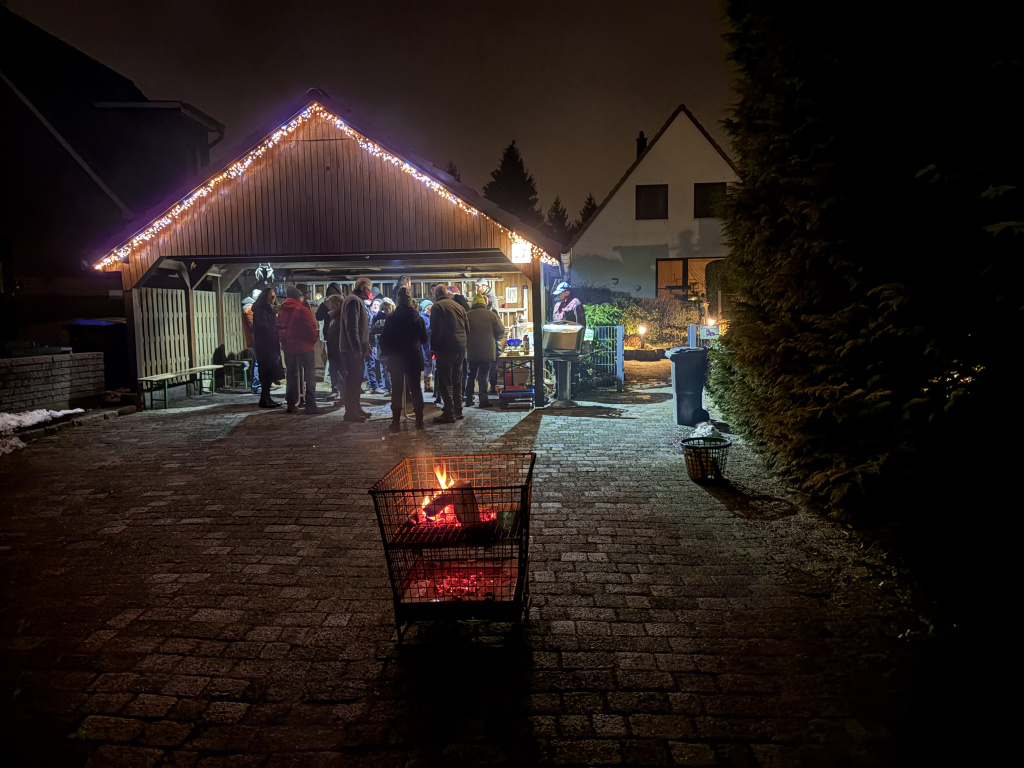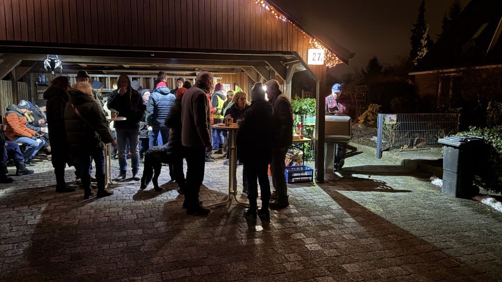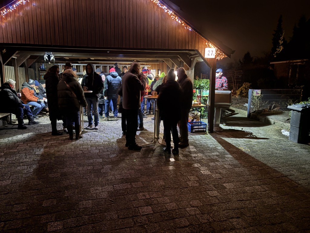 ![]() | Glühweinabend am 17.01.2026 Es war, trotz anfänglicher Hakeleien, mal wieder ein ausgesprochen netter und gemütlicher Abend. Etwas mehr als 30 Ossenmoorler/innen, die sich trafen. Aber nicht nur die, sondern auch Gäste, die über NABU von uns gehört hatten und mal schauen wollten, was das für ein Verein ist. Fazit des Abends: Viele Schnacks, genug leckere Würstchen, leckeres Brot und Glühwein! An dieser Stelle nochmals vielen Dank an die Behnckes für den bereitgestellten Veranstaltungsort, die Krapfen und die vierseitig 🙂 gegrillten Würstchen (Eingeweihte kennen den Joke!)! Auch die anderen Helferinnen und Helfer fanden es toll! Gerne wieder in 2027? JA |