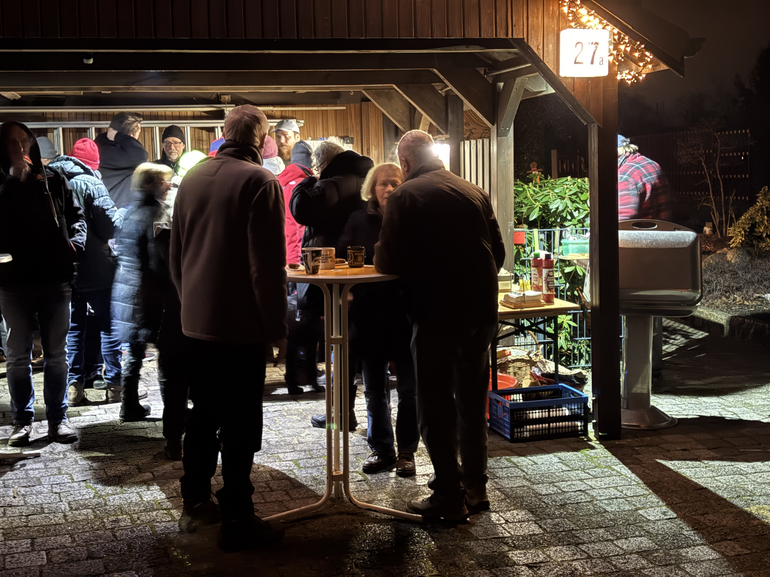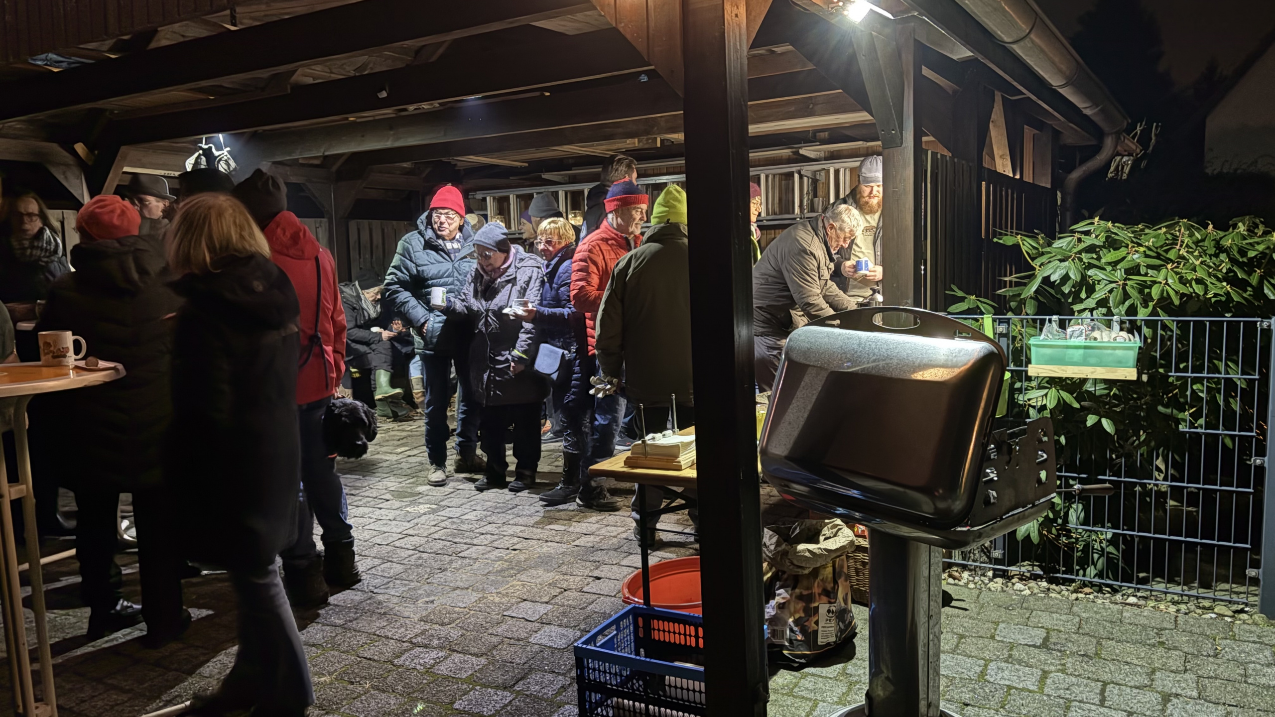 ![]() | Glühweinabend am 17.01.2026 Es war, trotz anfänglicher Hakeleien, mal wieder ein ausgesprochen netter und gemütlicher Abend. Etwas mehr als 30 Ossenmoorler/innen, die sich trafen. Aber nicht nur die, sondern auch Gäste, die über NABU von uns gehört hatten und mal schauen wollten, was das für ein Verein ist. Fazit des Abends: Viele Schnacks, genug leckere Würstchen, leckeres Brot und Glühwein! An dieser Stelle nochmals vielen Dank an die Behnckes für den bereitgestellten Veranstaltungsort, die Krapfen und die vierseitig 🙂 gegrillten Würstchen (Eingeweihte kennen den Joke!)! Auch die anderen Helferinnen und Helfer fanden es toll! Gerne wieder in 2027? JA |
